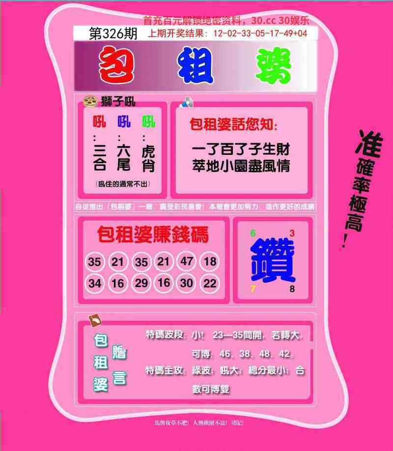| 326期:四肖 | 兔马牛猪 | 猪19准 |